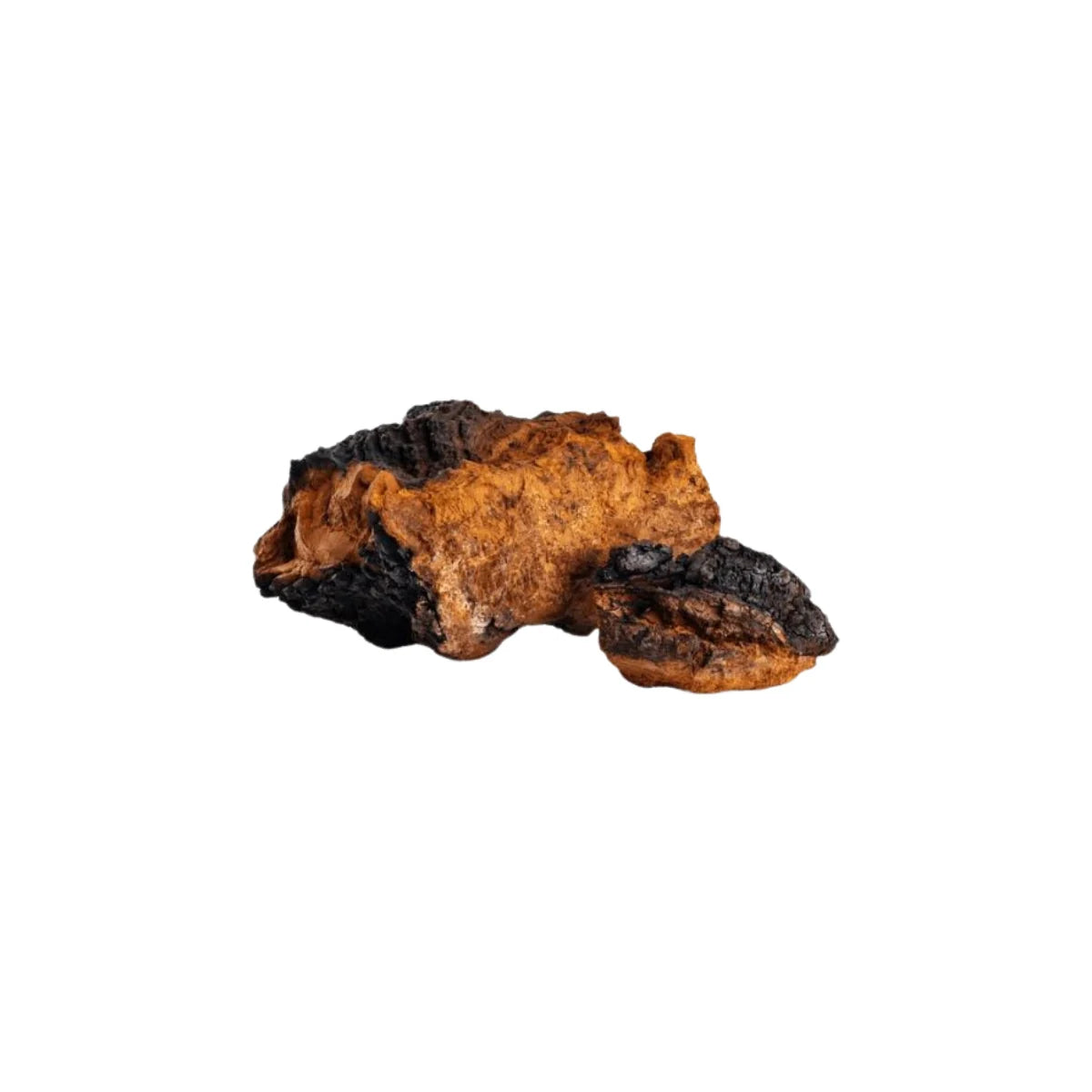 Wild Chaga grows symbiotically with birch trees, drawing in betulinic acid and other unique compounds unavailable in cultivated varieties. Its dark, carbon-rich structure reflects its dense antioxidant profile and natural potency.